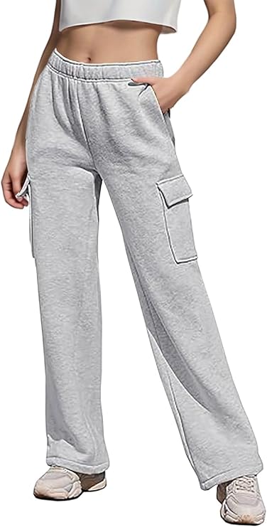 Cargo Sweatpants Women Wide Leg High Waisted Sweat Pants with Pockets Womens Lounge Casual Joggers