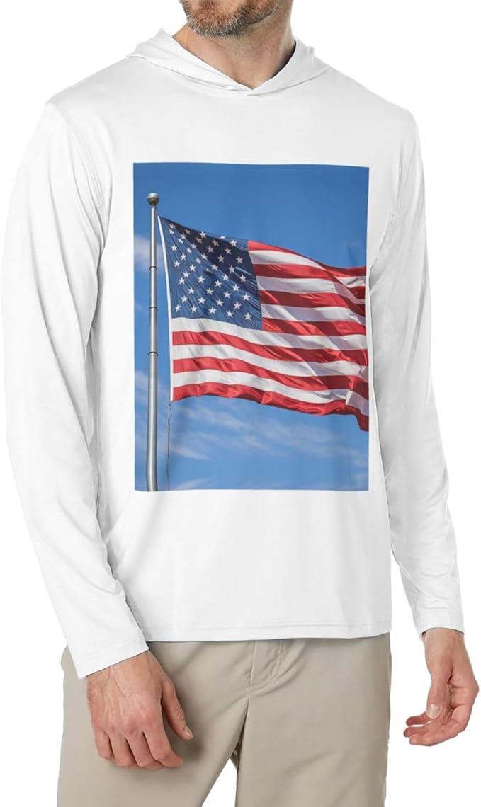 American Flag Print Men's Athletic Pullover Top Long Sleeve Workout Sport Hoodie Casual T Shirt